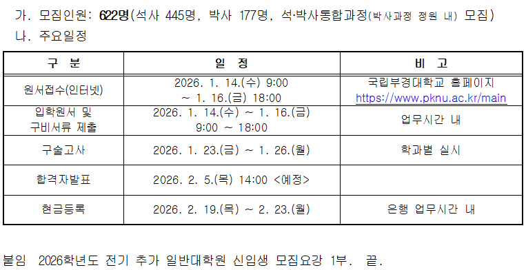 [일반대학원] 2026학년도 전기 추가 일반대학원 신입생 모집