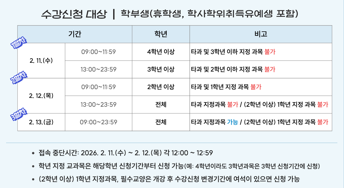 [수강신청] 2026-1학기 본수강신청 안내 (2/11~2/13)