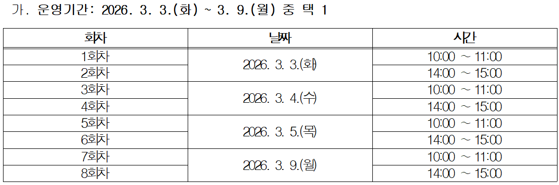 참여 희망 회차를 신청서에 작성해서 hyrn@pknu.ac.kr로 2026.02.23.까지 메일로 제출하면 신청 완료. |