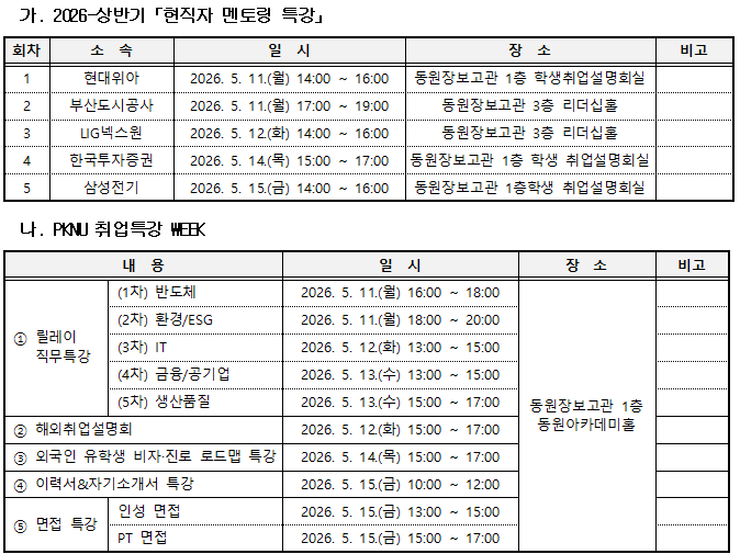[현직자 멘토링 특강] 및 [PKNU 취업특강 WEEK] 프로그램 안내