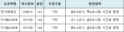 | [수강] 시간표 시간 변경된 교과목 알림 | |||