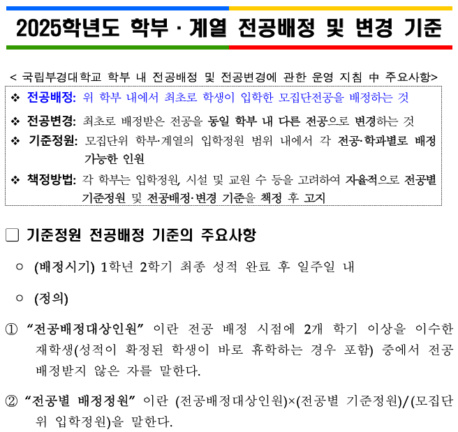 [전공배정] 2025학년도 학부.계열 전공배정 및 변경 기준 안내