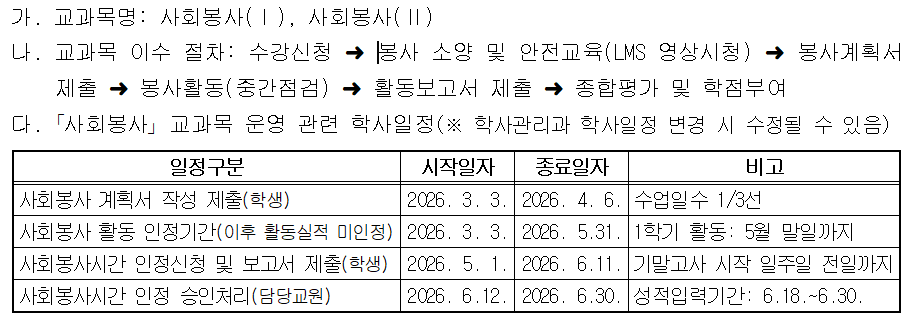 | 2026-1학기 사회봉사 교과목 관련 안내 | |||